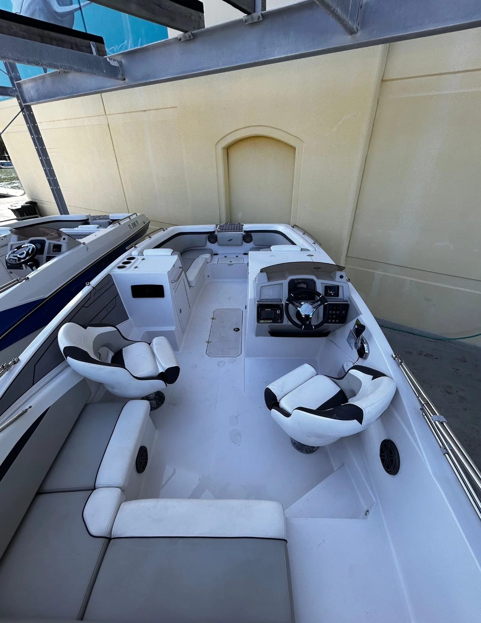 Professionally maintained and indoor kept. Engine hours are verified, and the boat has been routinely serviced. Clean inside and out—turnkey ready for your next adventure!