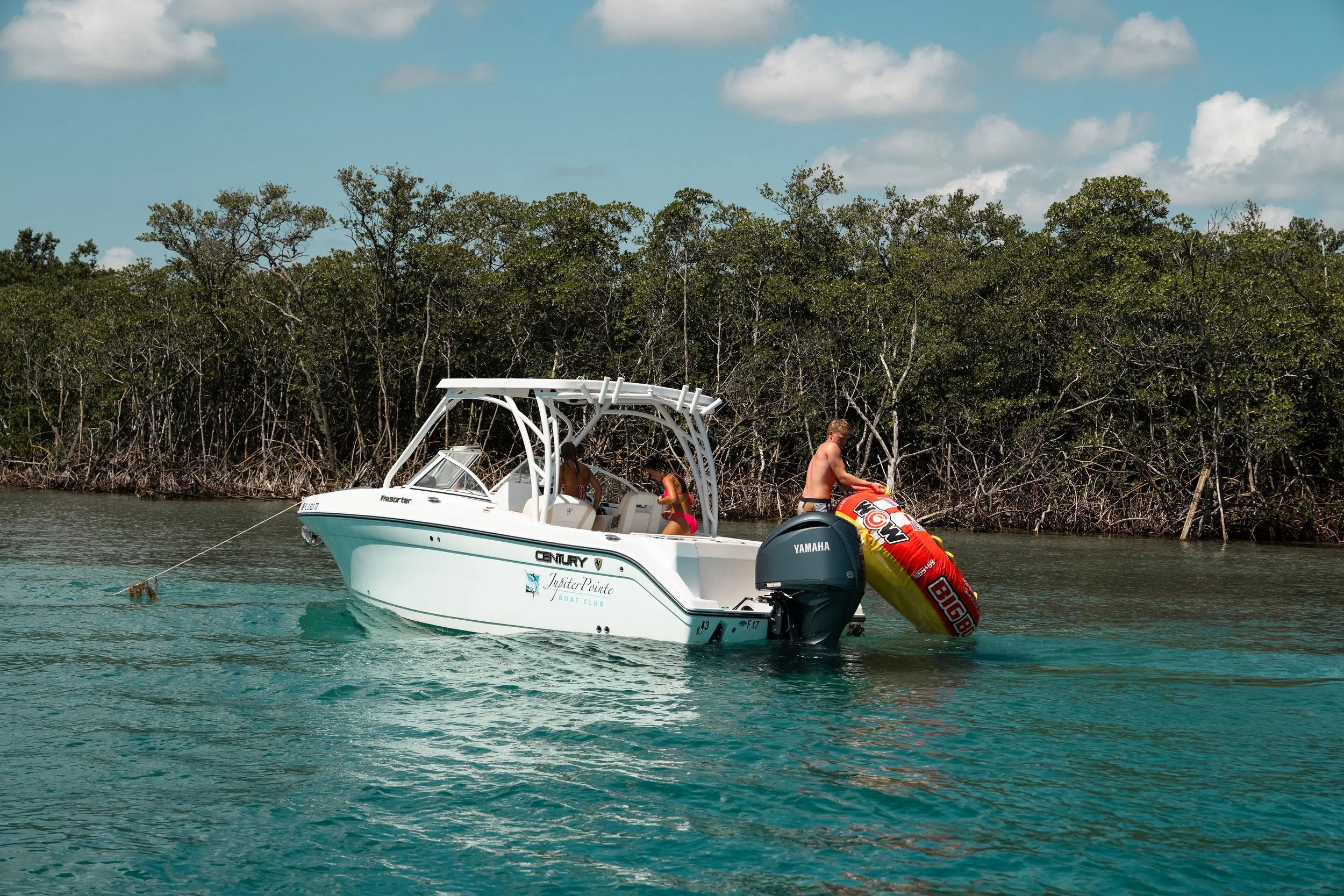 From Jupiter Pointe Boat Club you can explore a variety of popular cruising destinations right outside our back door. We are ideally located just minutes from the Jupiter Inlet, the Atlantic Ocean and Gulf Stream offers an excellent gateway to some of the best fishing in South Florida. Or cruise the Intracoastal and view the mansions on Jupiter Island or take the boat to one of the many protected coves and sandbars nearby that make great anchorages. With a variety of vessels to choose from you can enjoy any number of watersport activities like Wakeboard or Tubing along the ICW.